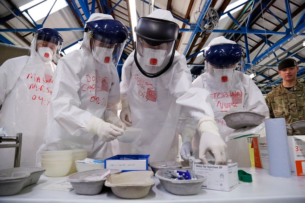 a woman in a face mask sitting next to a little girl
