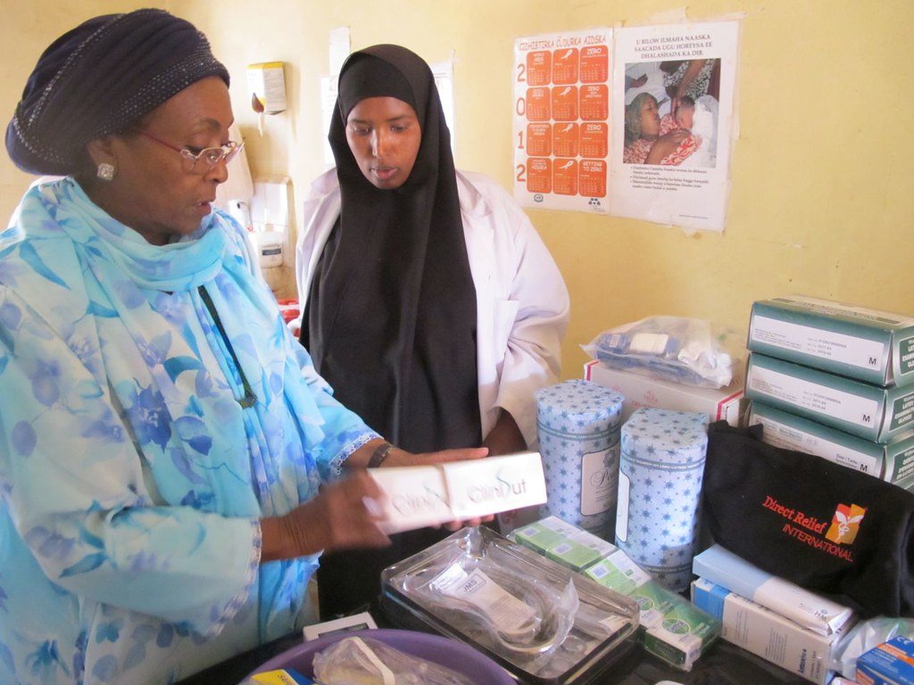 A female doctor in a white coat using a stethoscope during a patient examination.